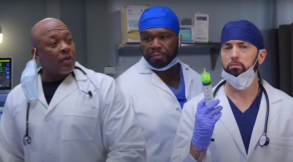 Вишенку на торте здесь добавляет позднее прибытие Эминема с угрожающе большим шприцем, наполненным подозрительной зеленой слизью.