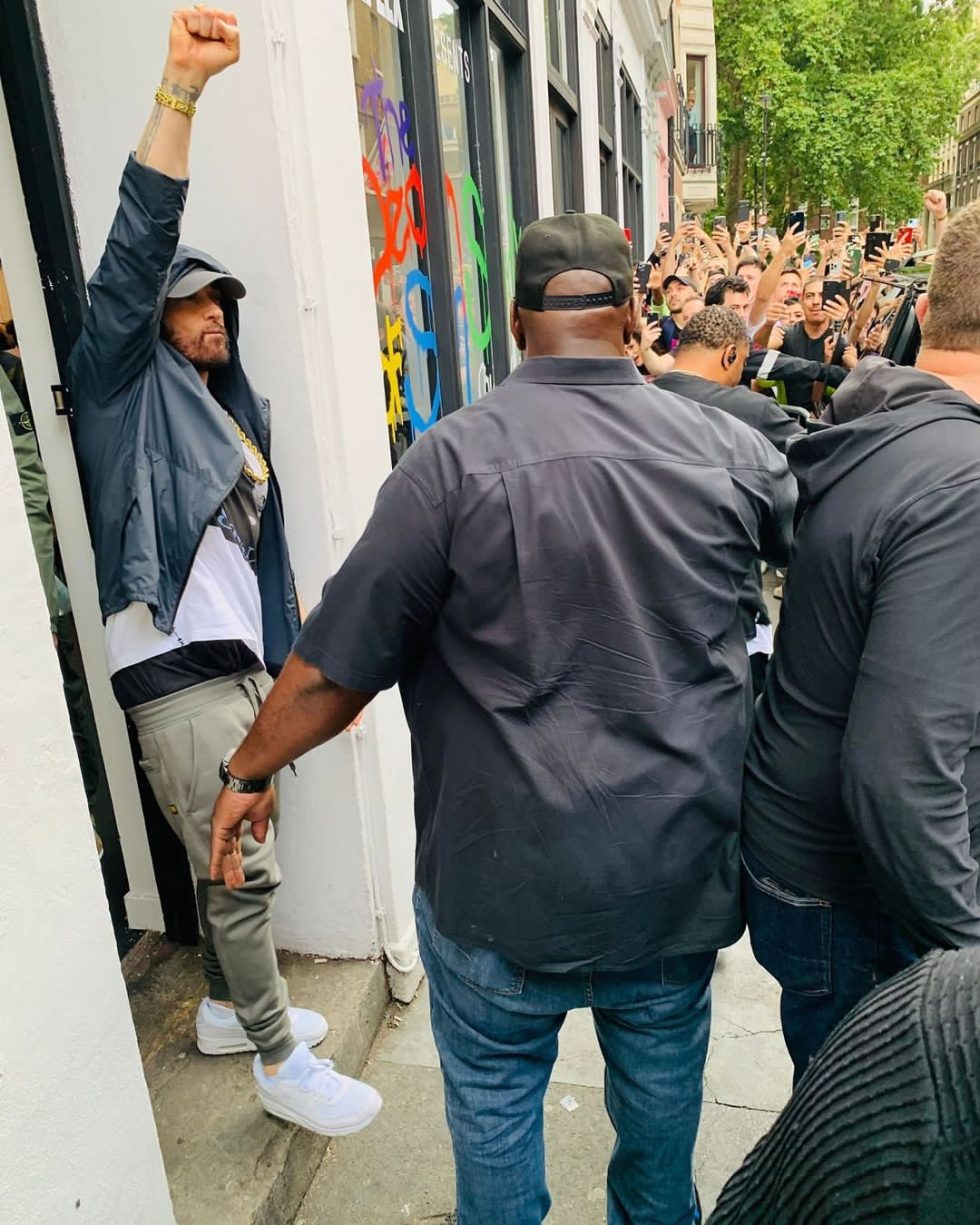 Эминем появился в Лондоне на церемонии похорон Slim Shady 17 июля, чтобы сфотографироваться с фанатами и подписать памятные вещи. Мероприятие, посвященное выпуску его последнего альбома «The Death of Slim Shady», проводится на улице Грик-стрит, 59 в Сохо и проводится в партнерстве с Complex. У фанатов была возможность не только попрощаться с альтер-эго Эминема, Слимом Шейди, но и встретиться с героем во плоти. Хотя никто не скажет наверняка кто в этот момент присутствовал: Маршалл, Эминем, или дух покойного Шейди, верно? 😜