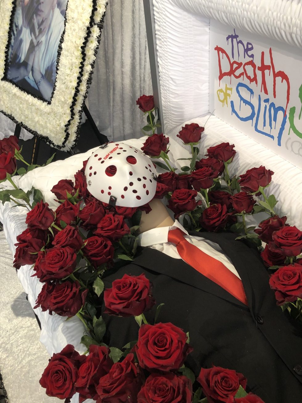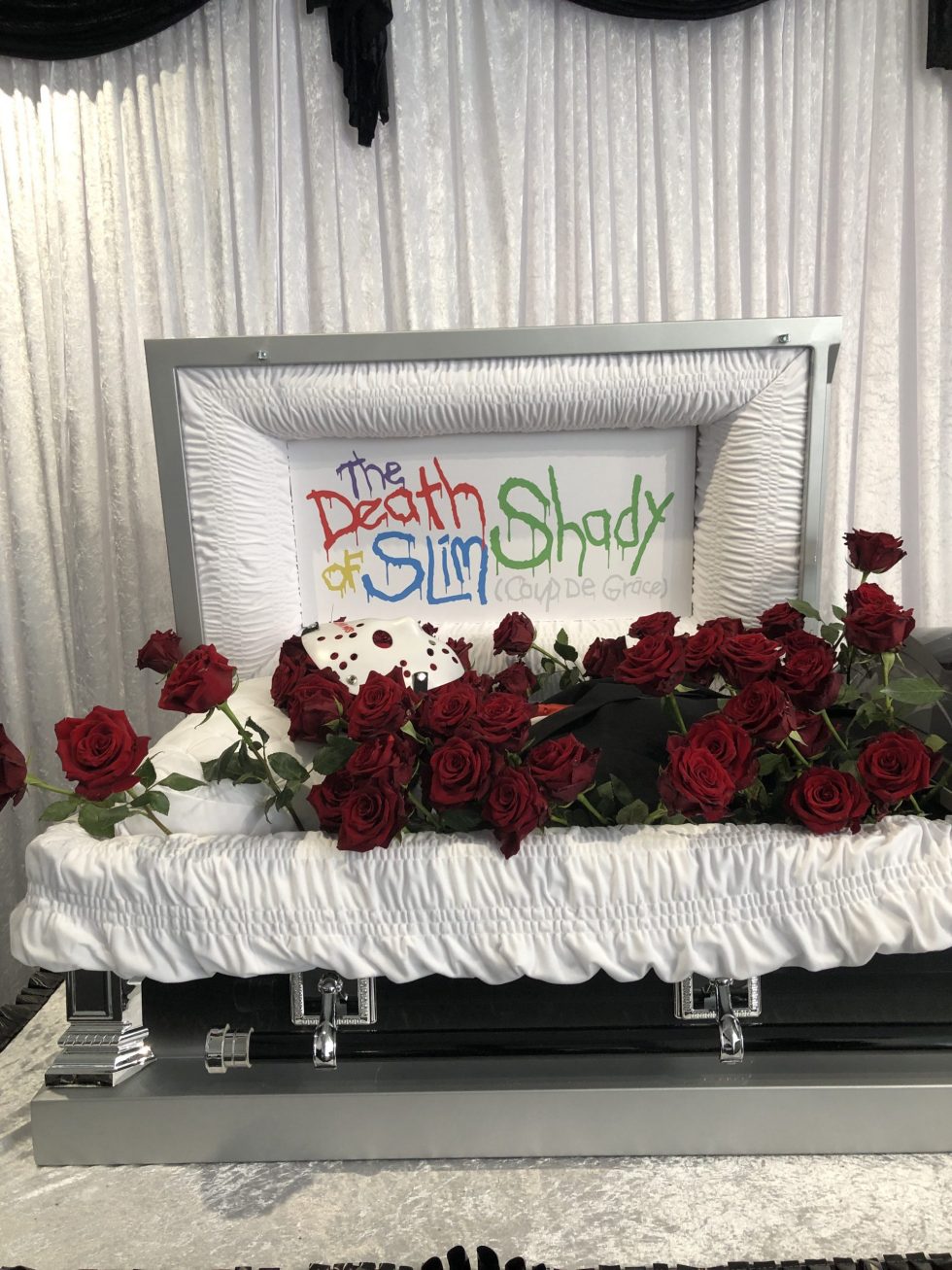 Мероприятие сочетает в себе элементы мемориала и художественной выставки, включая произведения искусства, фотографии и символический гроб, в котором покоится Слим Шейди.