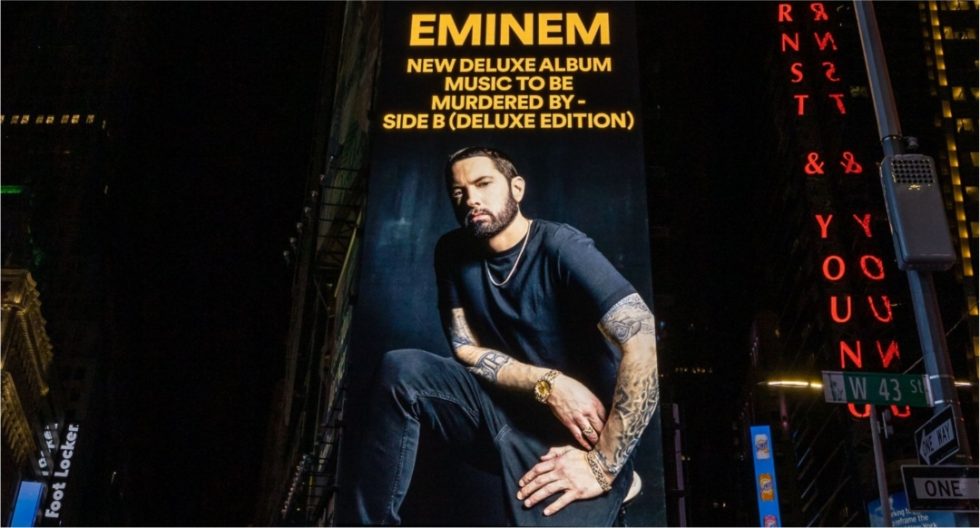 Spotify разместил промо свежего альбома Эминема «Music to Be Murdered By: Side B» на самом культовом месте Нью-Йорка.