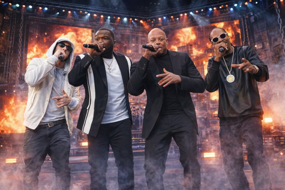 DJ WhooKid напомнил Snoop’у о картинке, которую тот выложил у себя в соцсетях. На изображении Эминем, 50 Cent и Snoop сидят в пляжной хижине тёплой тропической ночью и… играют в шахматы. Картинка выглядела так же фальшиво, как и большинство AI-генераций. Но желание поверить было настолько сильным, что интернет мгновенно заговорил о возрождении тура Up in Smoke.