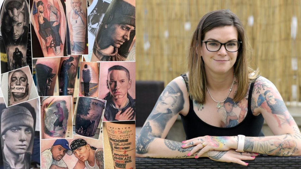 Никки, стэн из Британии, превратила свою кожу в холст преданности Эминему, и теперь она попала в Книгу рекордов Гиннесса за наибольшее количество татуировок одного и того же музыканта на своем теле.